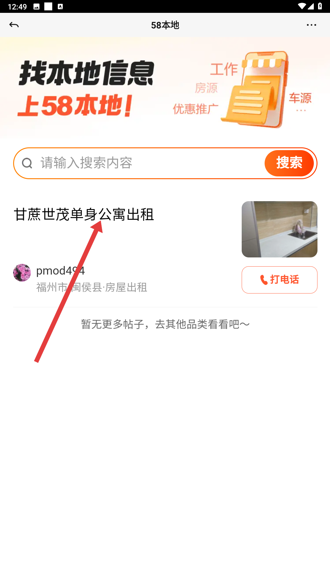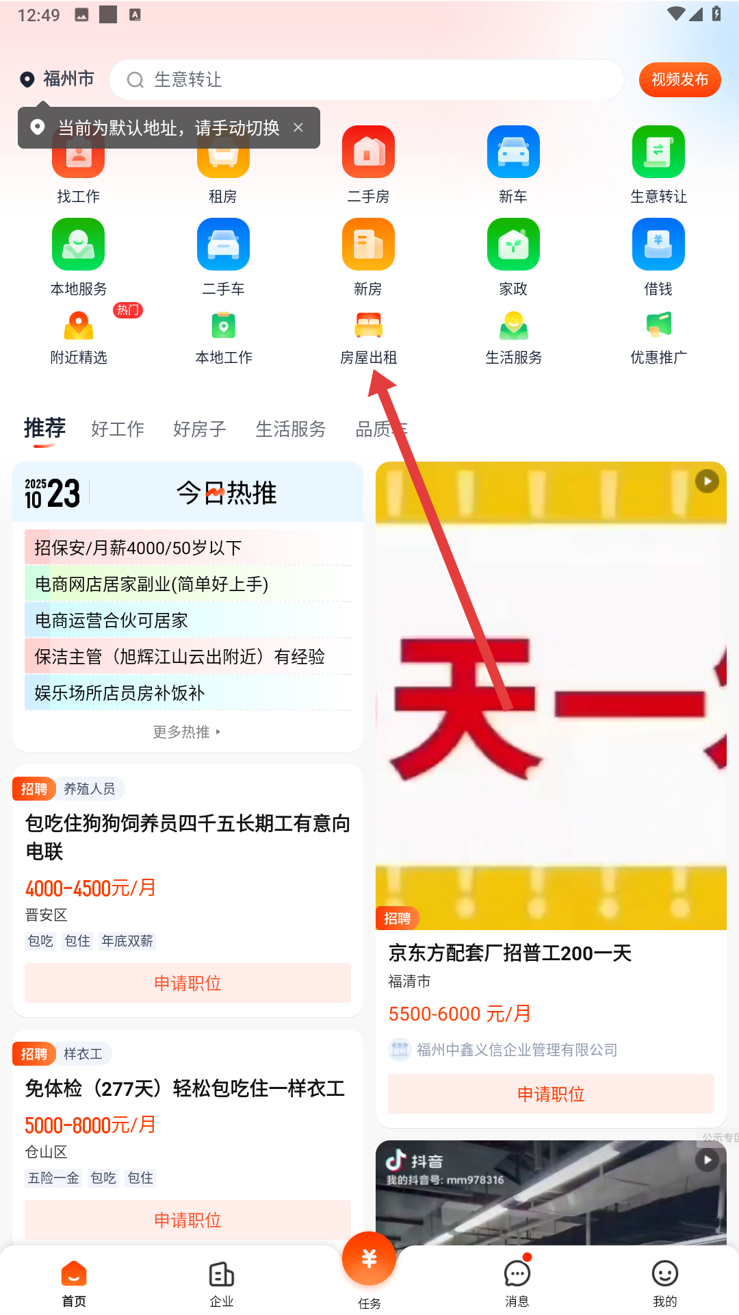 1、打開(kāi)58本地APP后,首頁(yè)點(diǎn)擊房屋出租選項(xiàng),進(jìn)入房屋出租信息列表界面。