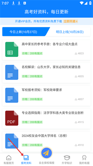 2、報(bào)考資料板塊,每日更新高考資料,如專業(yè)介紹、名校解讀等,開通VIP可免費(fèi)下載,資料按日期分類。