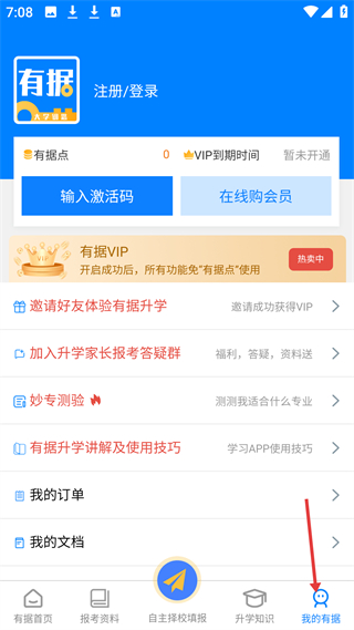 4、我的有據(jù)頁可注冊(cè)登錄,查有據(jù)點(diǎn)和VIP狀態(tài),有激活碼、購會(huì)員功能,還有好友邀請(qǐng)、答疑群等板塊。