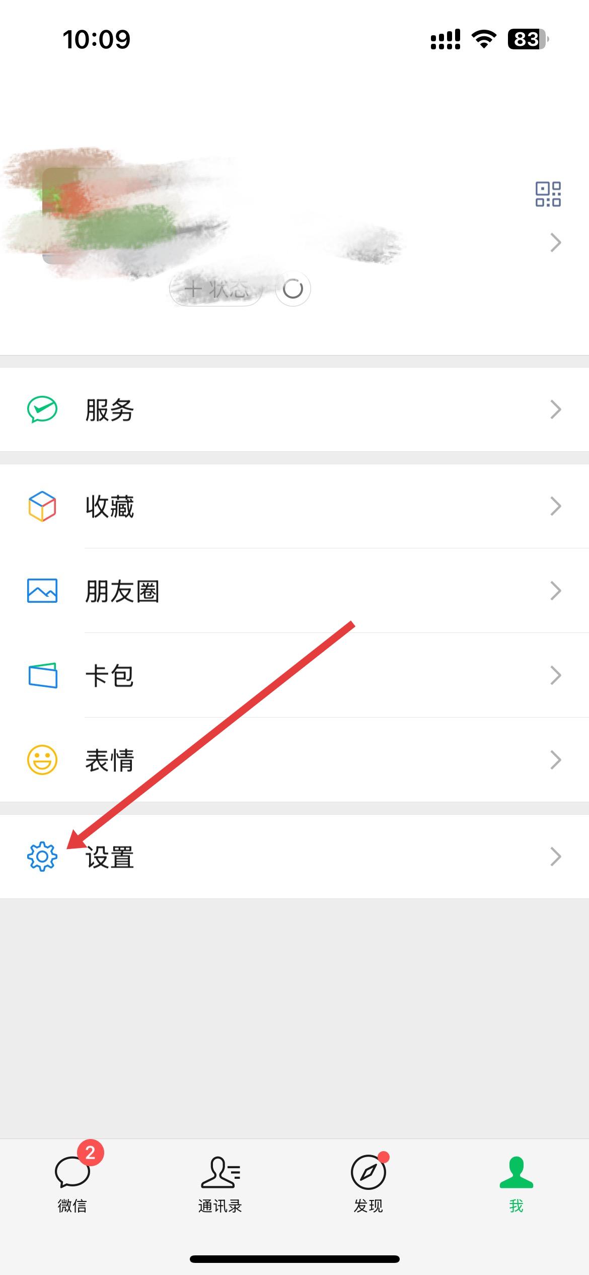 2、個(gè)人頁面里,有服務(wù)、收藏、卡包等多個(gè)選項(xiàng),找到設(shè)置選項(xiàng)并點(diǎn)擊,進(jìn)入設(shè)置界面。