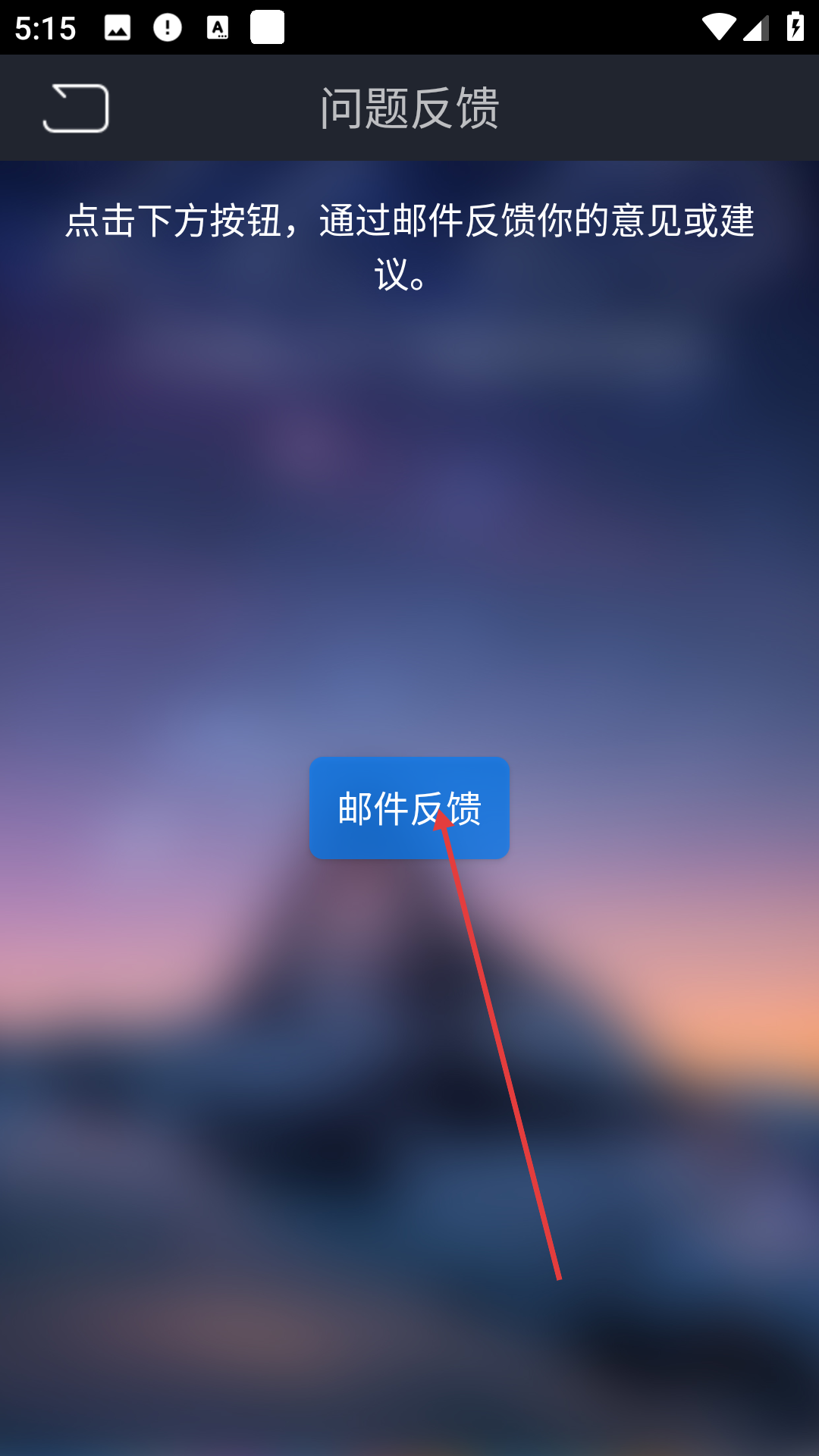 2、進入問題反饋頁面后點擊郵件反饋按鈕,軟件會引導(dǎo)你通過郵件形式反饋,后續(xù)可在郵件里詳細描述問題,借助郵件的文字、附件功能,清晰傳達反饋內(nèi)容。