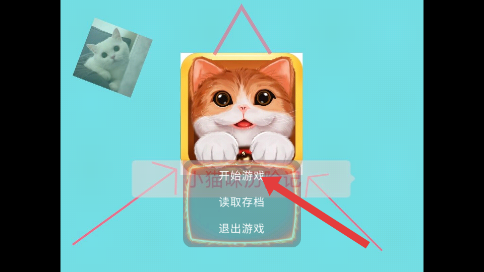 1、進(jìn)入游戲,點(diǎn)擊開始游戲,開啟小貓咪的歷險旅程,也可讀取存檔繼續(xù)之前的進(jìn)度,或退出游戲。