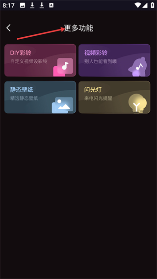 1、更多功能板塊涵蓋DIY彩鈴、視頻彩鈴、靜態(tài)壁紙、閃光燈功能,全面覆蓋彩鈴、壁紙、來電提醒等多方面?zhèn)€性化需求。