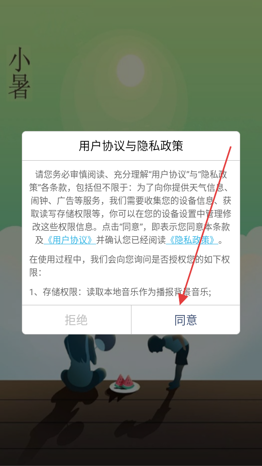 1、首次打開APP會彈出用戶協(xié)議及隱私政策界面,需仔細閱讀后點擊同意才能繼續(xù)使用APP,這一步是為了確保用戶了解并同意平臺使用個人信息的規(guī)則。
