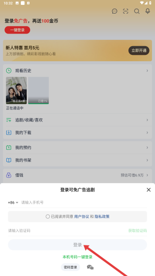 3、若選擇手機(jī)號(hào)登錄,輸入手機(jī)號(hào)和驗(yàn)證碼,點(diǎn)擊登錄,完成登錄流程。