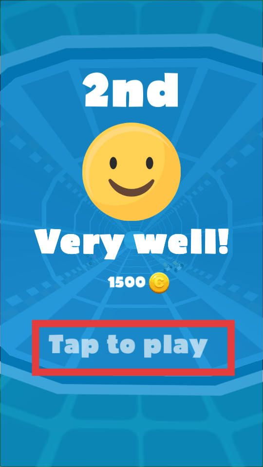 4、玩家完成比賽后,根據(jù)最終名次獲得相應(yīng)獎勵,若想再次挑戰(zhàn),可以重新點擊Tap to play開始新一局游戲。
