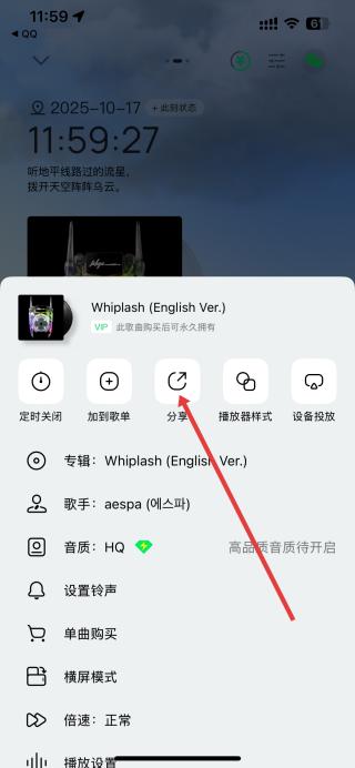 2、歌曲播放頁面,點擊右下角帶有三個點的更多按鈕,彈出包含多種功能的操作菜單。