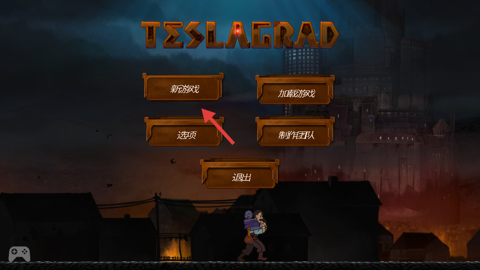 1、首先進入特斯拉格拉德游戲主界面,看到新游戲、加載游戲等選項,點擊新游戲就能開啟充滿未知與挑戰(zhàn)的游戲之旅,開啟后續(xù)的冒險探索。