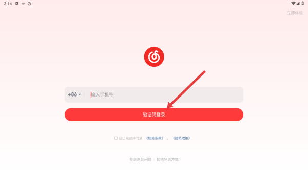 1、打開音樂類應(yīng)用,進入登錄頁面,輸入手機號后點擊驗證碼登錄,登錄前需勾選同意相關(guān)服務(wù)條款和隱私政策。