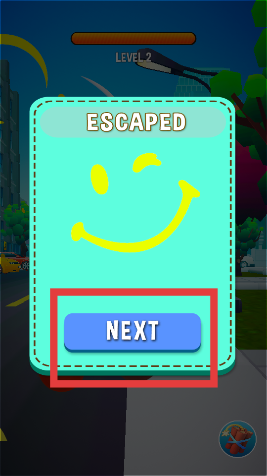4、成功躲避追捕,完成當(dāng)前關(guān)卡任務(wù)后,會(huì)出現(xiàn)ESCAPED提示,點(diǎn)擊NEXT按鈕進(jìn)入下一個(gè)關(guān)卡。