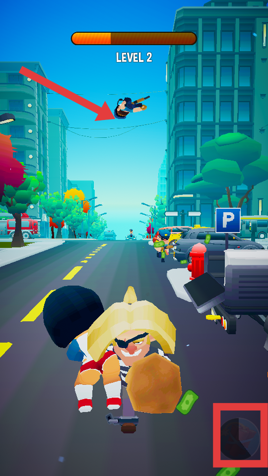 3、游戲中可能會(huì)遇到各種狀況,比如從空中投擲物品攻擊警察,幫助游戲角色擺脫困境,可繼續(xù)逃亡。
