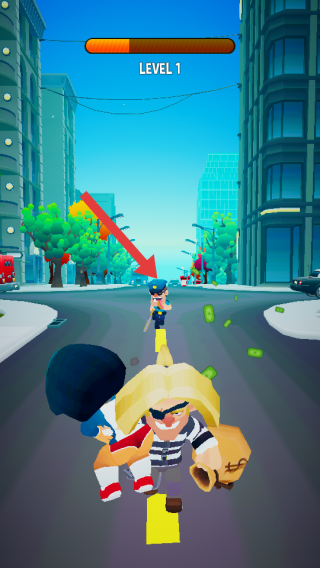 1、玩家游戲開(kāi)始后,操控角色在城市街道場(chǎng)景中前進(jìn),開(kāi)啟逃亡之旅,注意前方出現(xiàn)的警察等阻礙。