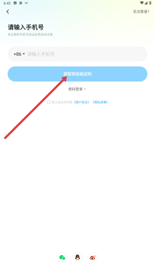 2、個人頁面,點擊立即登錄注冊,進(jìn)入登錄界面,可選擇手機號登錄,輸入手機號后點擊獲取短信驗證碼。