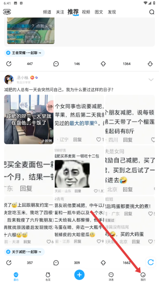 1、打開社交類APP,在首頁可瀏覽推薦的視頻、圖文等內(nèi)容,若要登錄,點擊右下我的,進(jìn)入個人相關(guān)頁面。