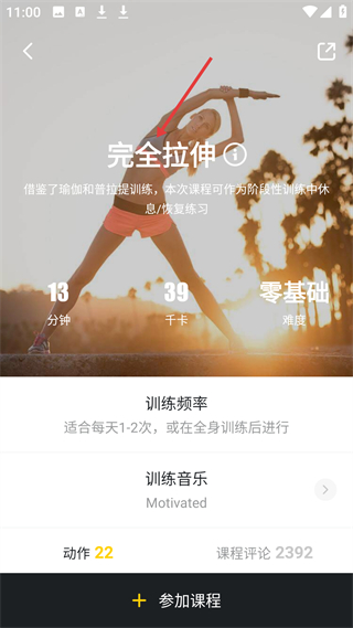 4、完全拉伸課程借鑒瑜伽普拉提,13分鐘燃脂39千卡,零基礎(chǔ),適合每天1、2次或全身訓(xùn)練后,動作22個評論2392條。