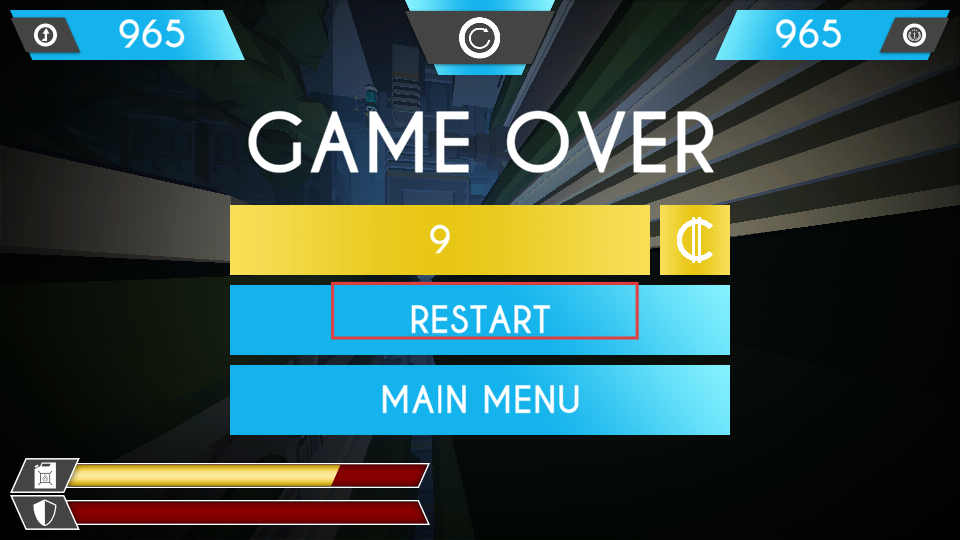4、如果在游戲過程中失敗,出現(xiàn)GAME OVER界面,點擊RESTART按鈕,可重新開始當前關卡,再次嘗試挑戰(zhàn)。