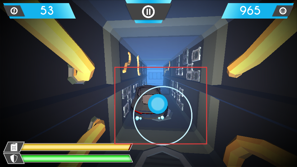 2、進入游戲場景后,通過屏幕中的虛擬操縱按鈕,控制游戲中的物體如車輛移動,在復雜的通道等地形中前進。