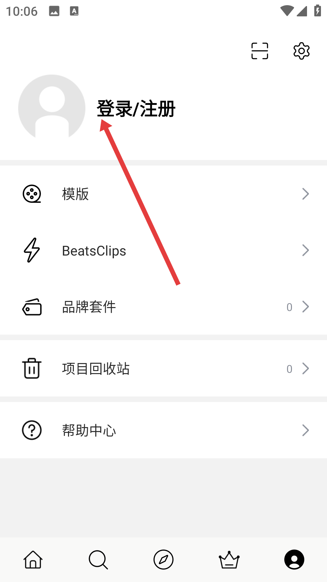1、打開vn視跡簿應(yīng)用,點(diǎn)擊底部導(dǎo)航欄中最右側(cè)的人像圖標(biāo),進(jìn)入個(gè)人中心界面,在該界面點(diǎn)擊頭像旁邊醒目的登錄注冊按鈕,即可進(jìn)入注冊登錄相關(guān)流程頁面。