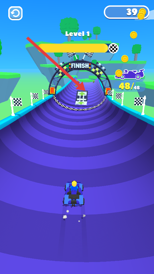 3、賽道上分布著金幣,駕駛賽車時盡可能收集這些金幣,玩家成功抵達終點之后,游戲即可成功通過。