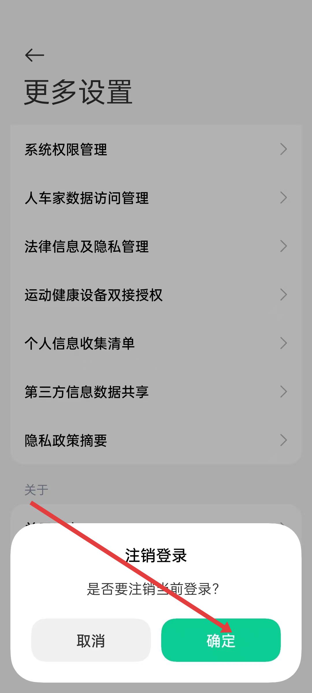 3、更多設(shè)置頁(yè)面,找到退出登錄按鈕,點(diǎn)擊它彈出注銷(xiāo)登錄確認(rèn)窗口,詢(xún)問(wèn)是否要注銷(xiāo)當(dāng)前登錄。