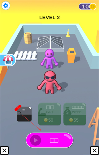 1、玩家下載游戲在游戲初始界面,點(diǎn)擊下方紫色帶有播放標(biāo)志的按鈕,操控綠色小人進(jìn)入關(guān)卡開(kāi)始游戲。