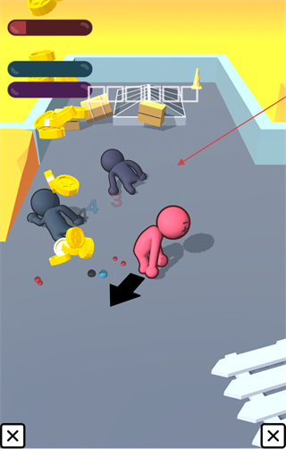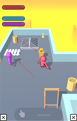 2、進(jìn)入關(guān)卡后會(huì)遭遇如粉色小人等敵人,觀察敵人的行動(dòng)和攻擊方式,利用場(chǎng)景中的道具和地形,操控角色走位躲避敵人攻擊。