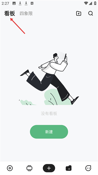 2、看板頁(yè)當(dāng)前無(wú)看板,有新建按鈕,可創(chuàng)建看板,輔助歸納整理各類信息,讓記錄更有條理。