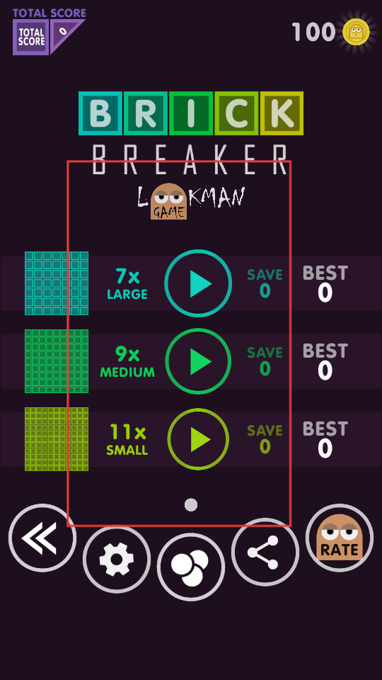 1、選擇不同規(guī)模的關(guān)卡,如7乘LARGE、9乘MEDIUM、11乘SMALL,點(diǎn)擊對(duì)應(yīng)播放按鈕,進(jìn)入磚塊消除挑戰(zhàn)。