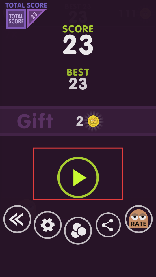 4、每局結(jié)束后,會(huì)顯示得分和最佳成績(jī),還能獲得金幣獎(jiǎng)勵(lì),點(diǎn)擊播放按鈕可繼續(xù)挑戰(zhàn)新的關(guān)卡。