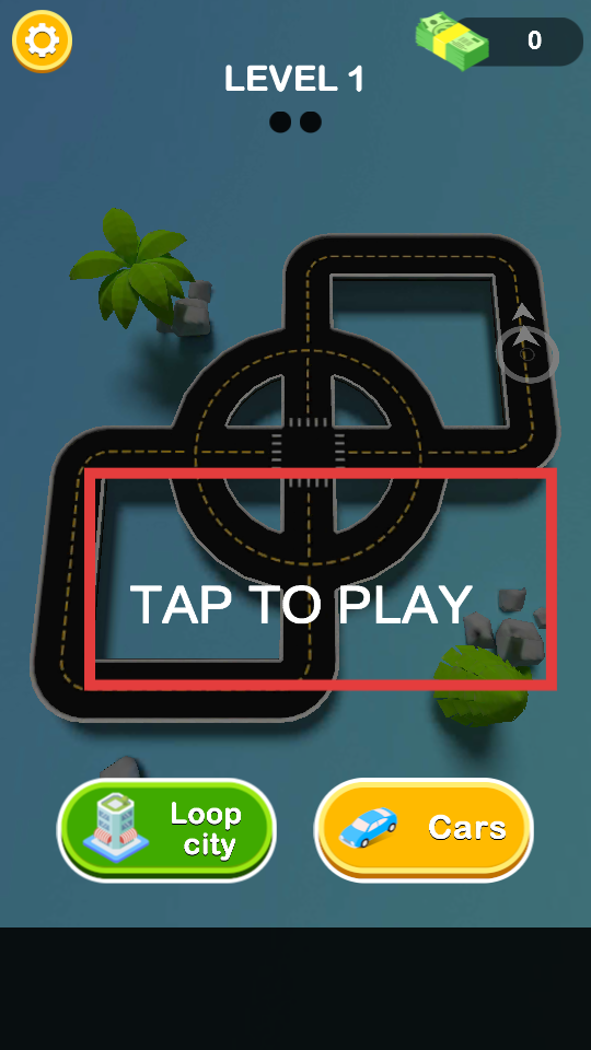 1、玩家下載游戲之后在游戲初始界面,點擊TAP TO PLAY按鈕,進入游戲關(guān)卡,開啟循環(huán)汽車城市島的挑戰(zhàn)。
