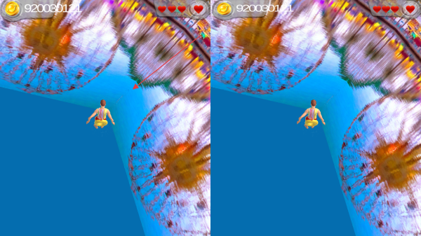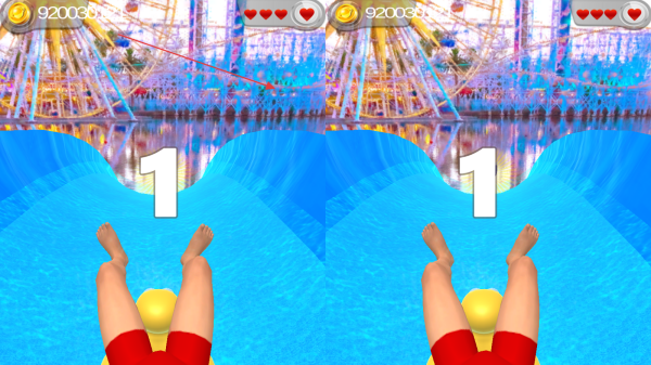 3、通過操作設(shè)備操控角色在水上滑梯上的滑行方向和速度感受滑下的刺激,同時避開可能出現(xiàn)的小障礙,確保順利滑行。