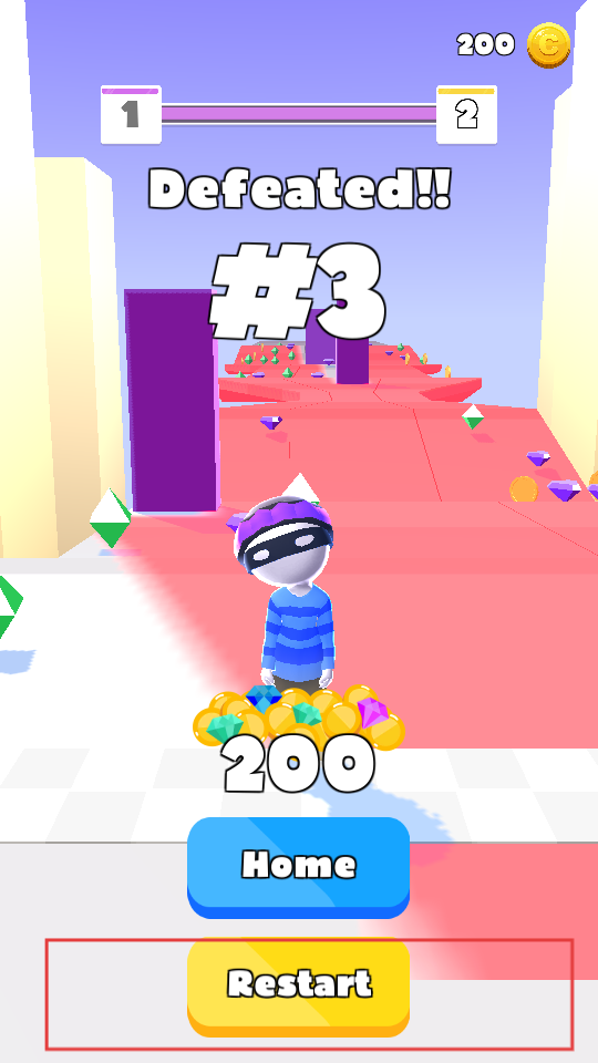 4、如果在游戲中失敗,比如被警察抓住或沒(méi)有在規(guī)定條件下完成收集任務(wù),此時(shí)可以點(diǎn)Restart按鈕,重新開(kāi)始當(dāng)前關(guān)卡。