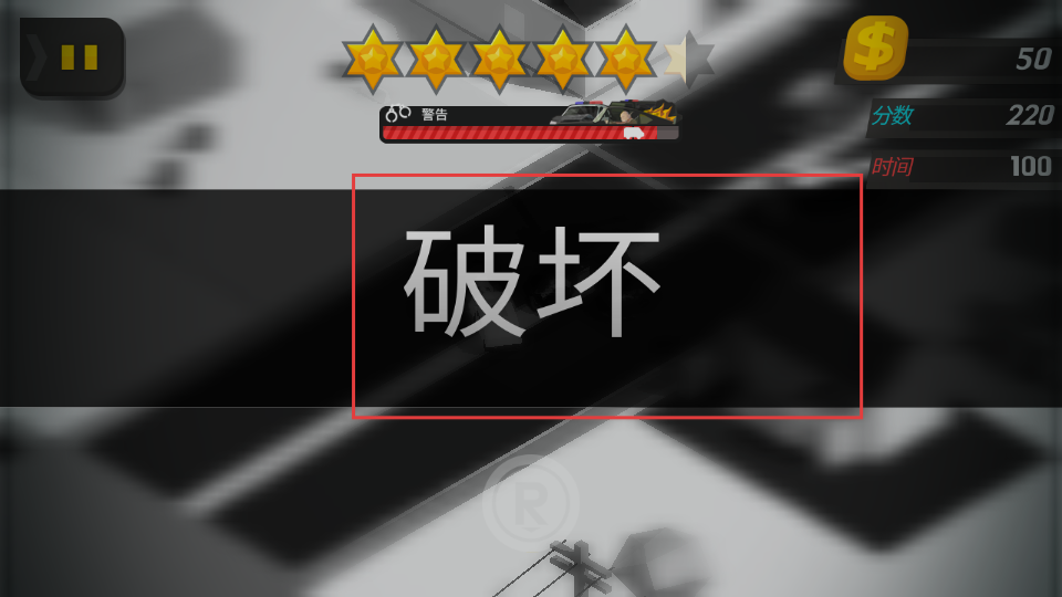 4、可以駕駛車輛進(jìn)行一定的破壞行為,同時(shí)挑戰(zhàn)在規(guī)定時(shí)間內(nèi)完成行駛目標(biāo)、獲取高分,不斷突破自我,解鎖更高星級評價(jià)。