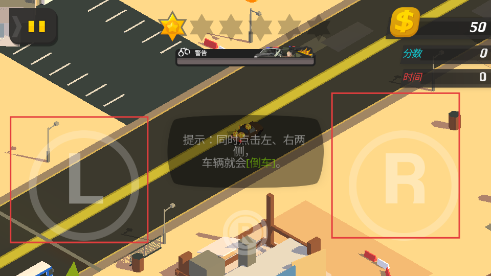 1、通過點(diǎn)擊屏幕左側(cè)L和右側(cè)R的按鈕來操控車輛行駛方向,同時(shí)點(diǎn)擊兩側(cè)按鈕可讓車輛倒車,靈活駕駛車輛在城市道路中穿梭。