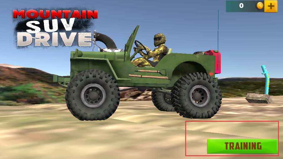 1、點(diǎn)擊TRAINING按鈕進(jìn)入模式,在該模式下可通過(guò)屏幕左側(cè)的左右箭頭按鈕控制車(chē)輛轉(zhuǎn)向,右側(cè)的踏板按鈕控制車(chē)輛加速與減速,熟悉山地越野車(chē)的操控方式。