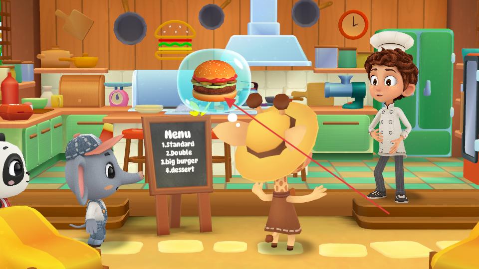 1、進入游戲看到餐廳場景和菜單,根據(jù)顧客需求,確定要制作的漢堡類型,開始準(zhǔn)備制作漢堡的食材。
