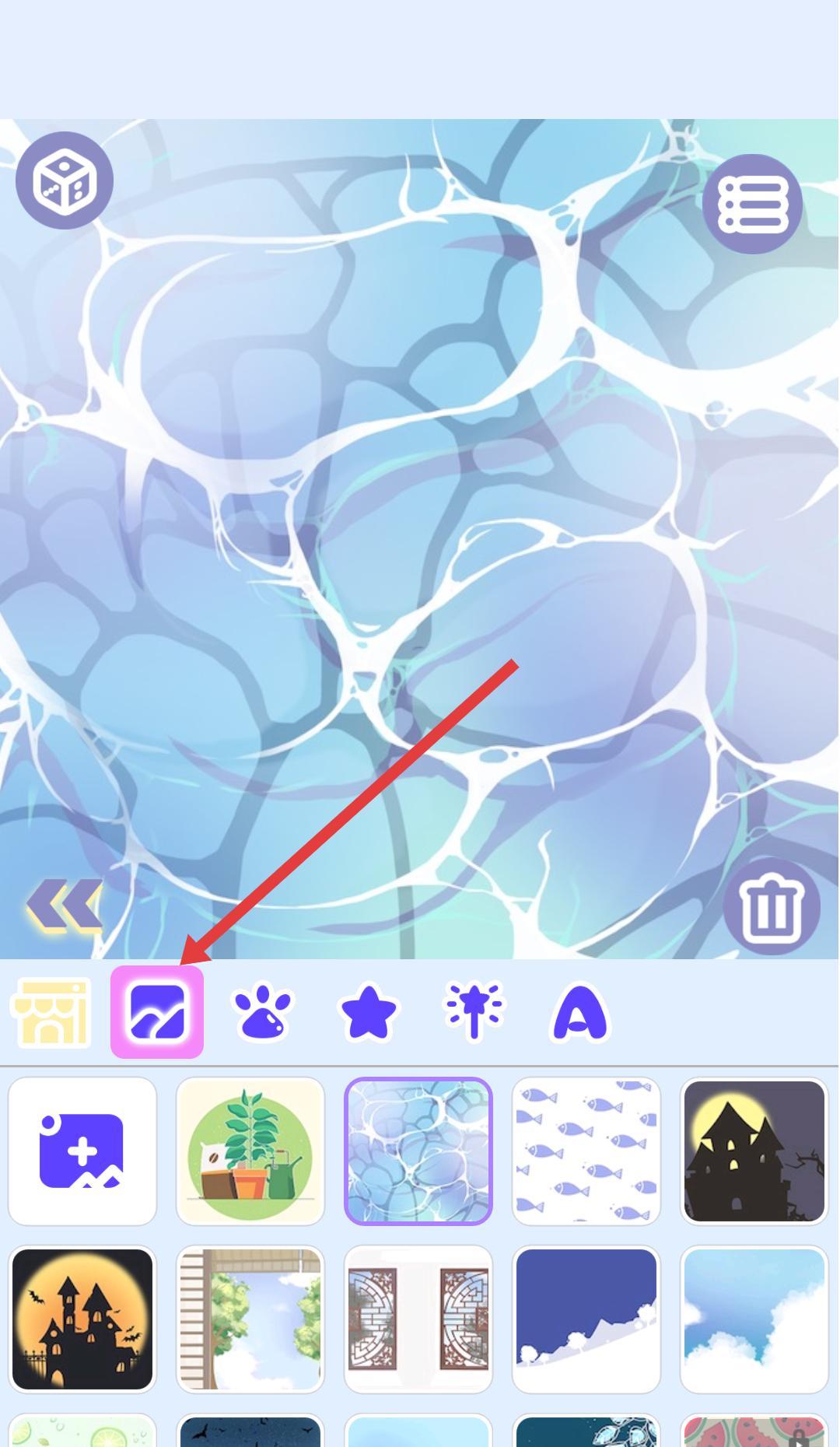 2、在編輯界面中從下方的素材選項(xiàng)里選擇喜歡的背景,為創(chuàng)作的內(nèi)容營(yíng)造合適的場(chǎng)景氛圍。