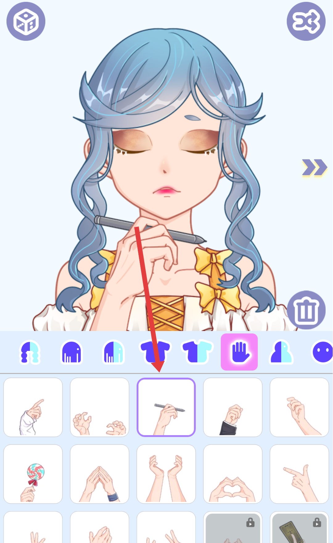 3、從素材中挑選人物的手部動(dòng)作等元素,將其添加到畫(huà)面中讓人物形象更豐富生動(dòng)。