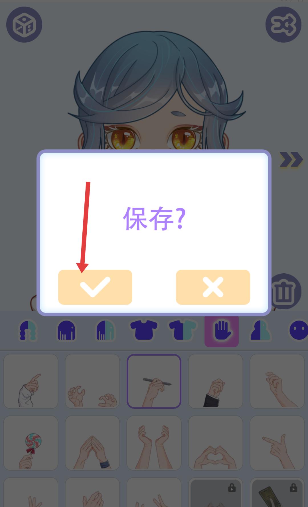 4、完成創(chuàng)作后,當(dāng)彈出保存的提示框時(shí),點(diǎn)擊對(duì)勾按鈕,將自己創(chuàng)作的內(nèi)容保存下來(lái)。