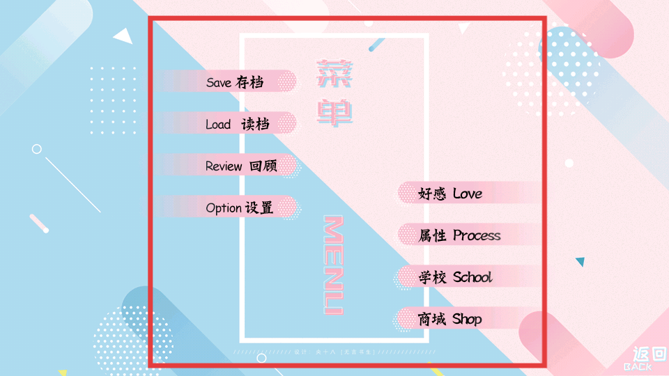 4、游戲菜單界面有存檔、讀檔、回顧、設(shè)置等功能,還有好感、屬性、學(xué)校、商城等選項,可利用這些功能管理游戲進(jìn)程、查看角色的情況等助力名校養(yǎng)成。