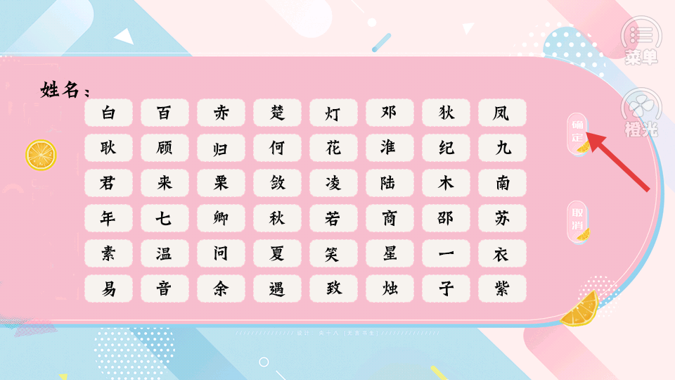 3、進(jìn)行角色姓名設(shè)置時,在姓名選擇界面從眾多姓氏中挑選心儀的姓氏,選好后點(diǎn)擊確定按鈕完成姓名設(shè)置,開啟專屬的名校養(yǎng)成之旅。