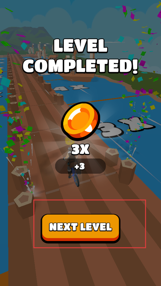 4、成功到達(dá)終點(diǎn),完成當(dāng)前關(guān)卡挑戰(zhàn),在關(guān)卡完成界面,點(diǎn)擊NEXT LEVEL按鈕,進(jìn)入下一個(gè)更具挑戰(zhàn)性的關(guān)卡。