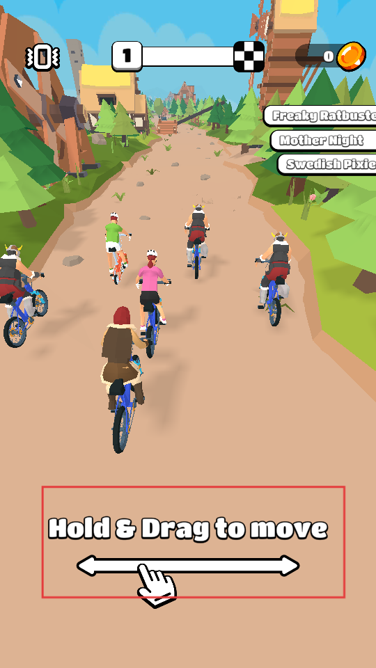 1、游戲中按住并拖動(dòng)屏幕,控制自己的自行車(chē)在賽道上左右移動(dòng),調(diào)整位置以超越對(duì)手或躲避障礙。