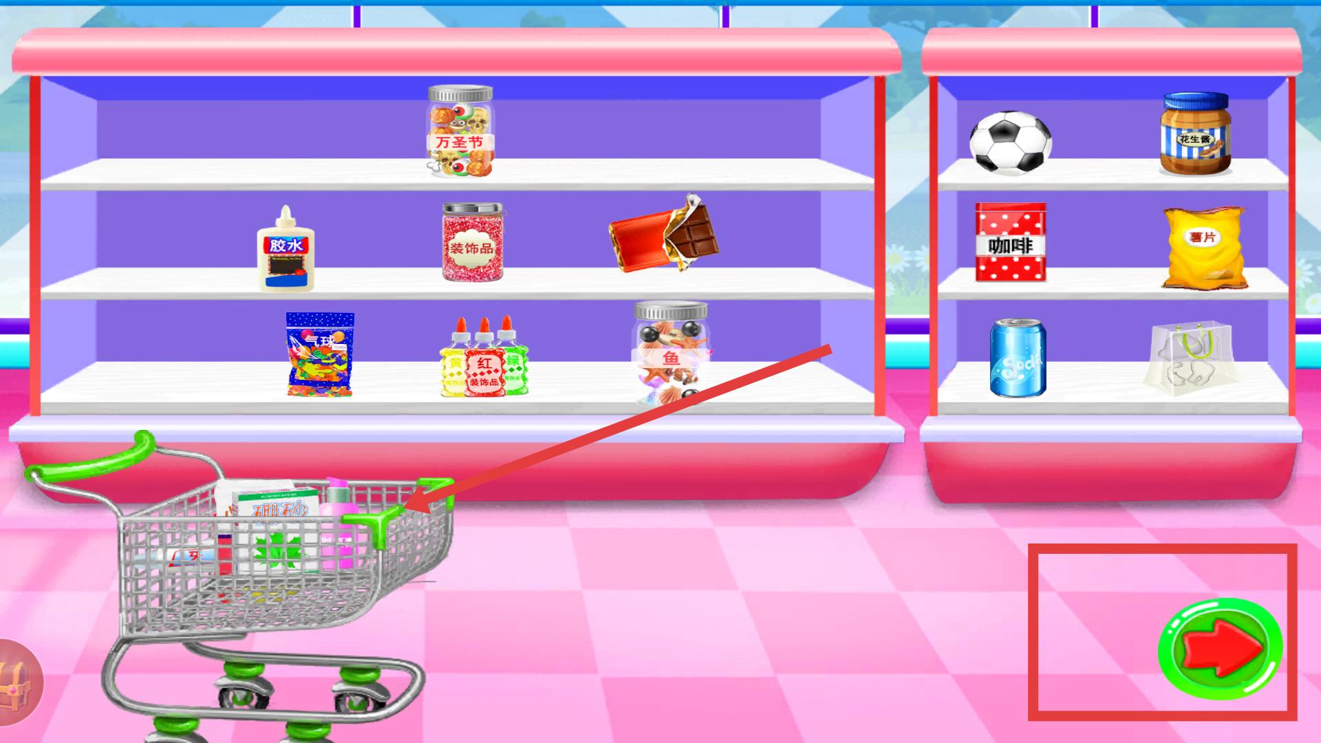 4、挑選完所需材料后點(diǎn)擊界面右下角的綠色箭頭按鈕,結(jié)算購(gòu)物車中的物品,完成本次商店購(gòu)物,為粘液制作提供充足的材料。