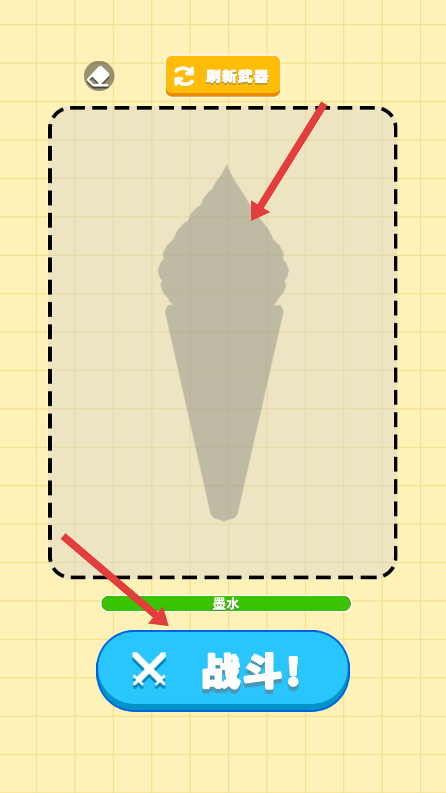 2、進入武器選擇界面后,可看到當前可選武器輪廓進行描繪,若對當前武器不滿意,可點擊刷新武器按鈕更換新的武器,然后點戰(zhàn)斗按鈕。