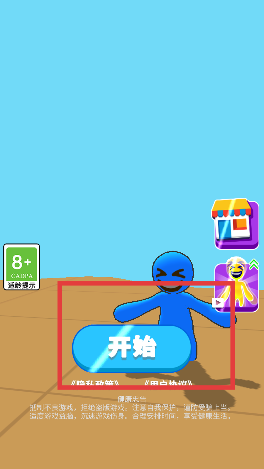 1、玩家下載游戲之后在游戲主界面,點擊開始按鈕,進入看我錘扁你游戲,即可開啟對戰(zhàn)挑戰(zhàn)。