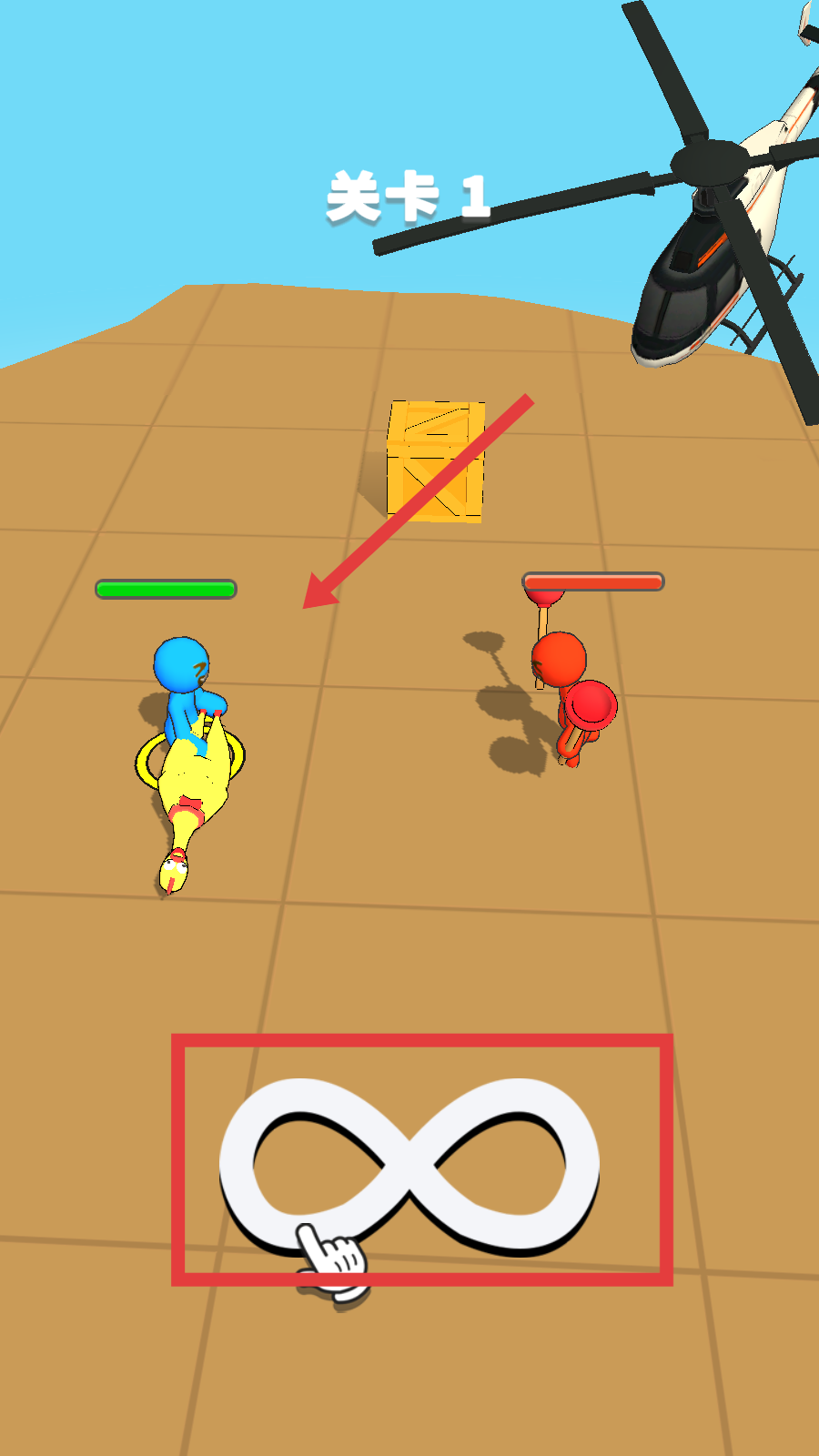 3、在戰(zhàn)斗關(guān)卡中通過屏幕上的操控區(qū)域,操控角色移動、攻擊利用手中的武器,與對手如紅色小人角色進行戰(zhàn)斗,攻擊對手以削減其血量。