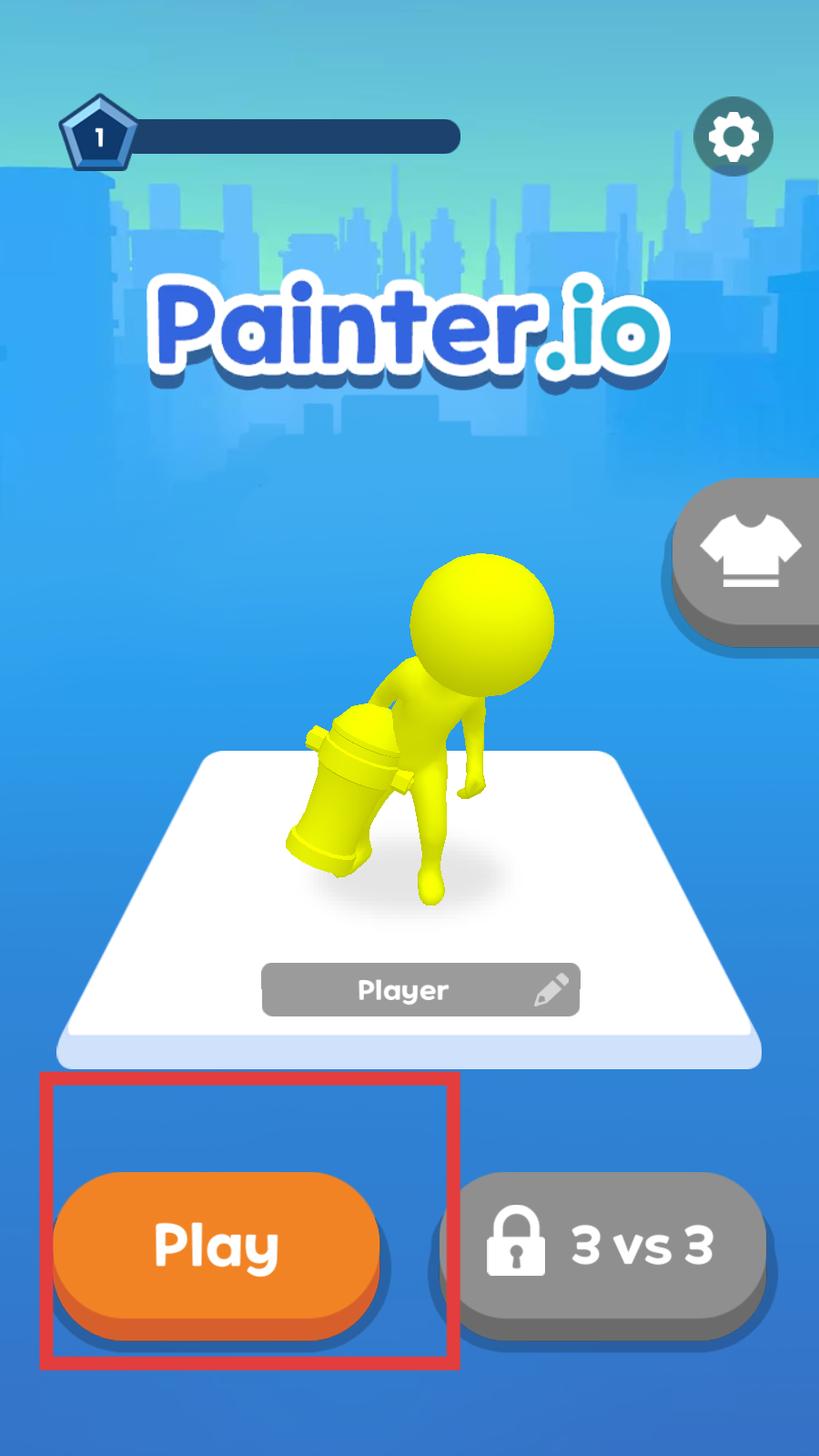1、玩家下載游戲之后在游戲主界面,點(diǎn)擊橙色Play按鈕,進(jìn)入色彩噴射游戲,開(kāi)啟色彩涂鴉對(duì)戰(zhàn)。
