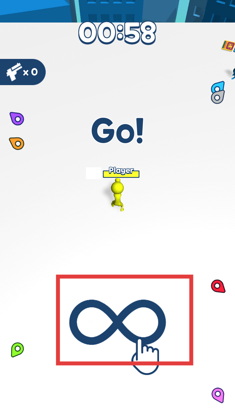 2、游戲開(kāi)始后,通過(guò)屏幕上的無(wú)限符號(hào)形狀操控區(qū)域,滑動(dòng)或點(diǎn)擊來(lái)操控小人角色在場(chǎng)景中移動(dòng),靈活調(diào)整位置。