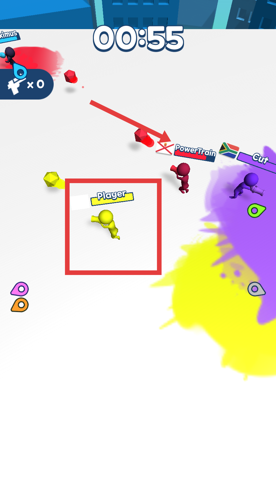 3、操控角色靠近可涂鴉的區(qū)域或其他對(duì)手,進(jìn)行色彩噴射操作,用自己的顏色覆蓋場(chǎng)景或?qū)κ郑源藖?lái)擴(kuò)大自己的涂鴉范圍,同時(shí)也能干擾對(duì)手。